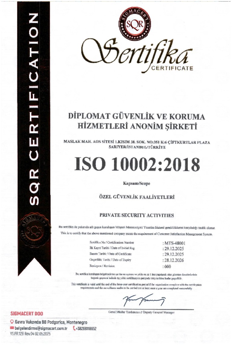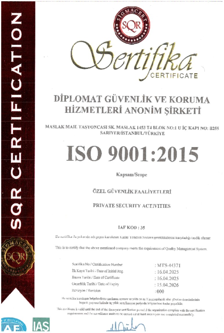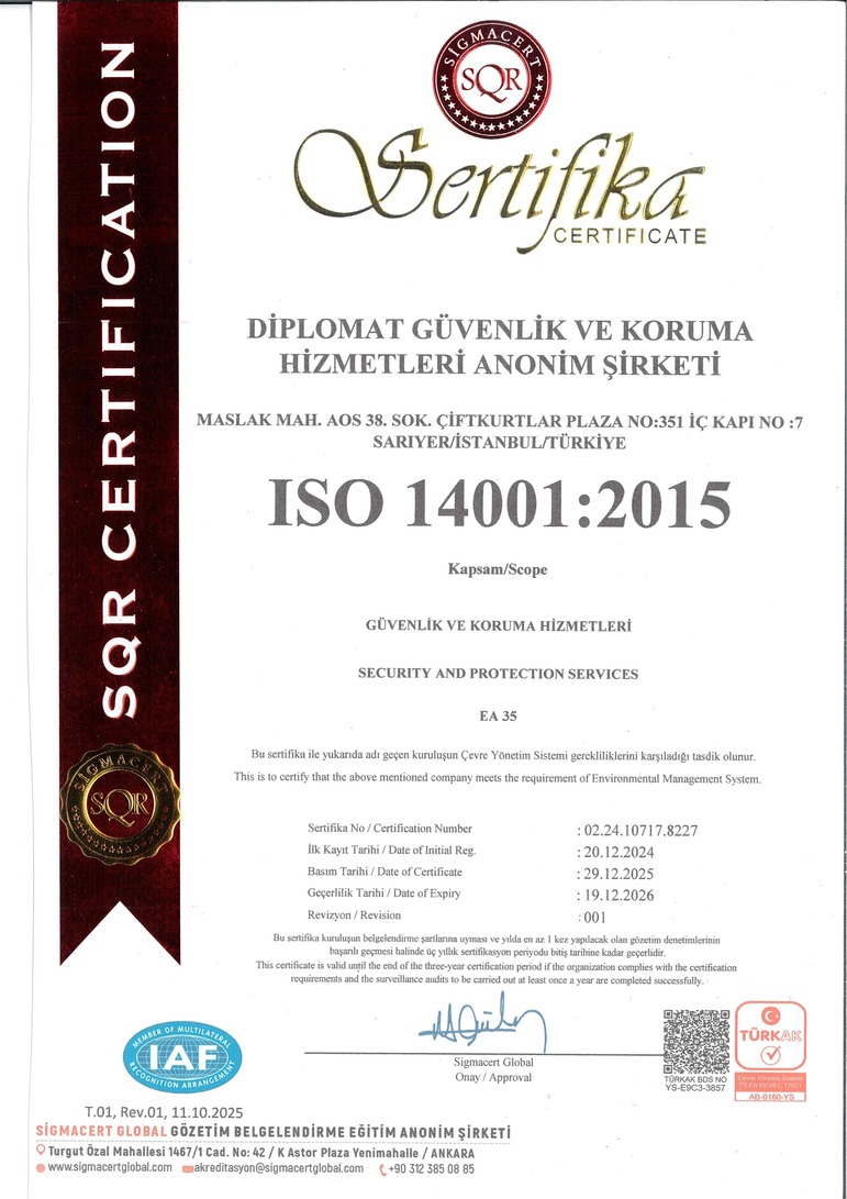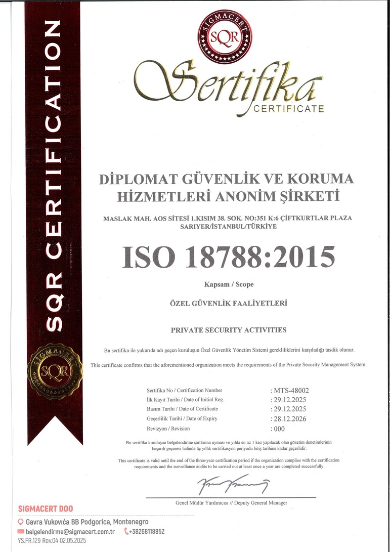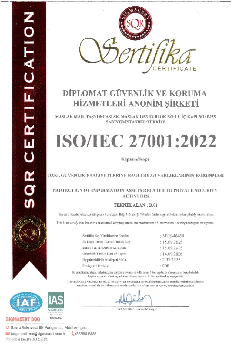 Entegre yönetim sistemlerini kapsamında Diplomat Güvenlik üst yönetimi ;