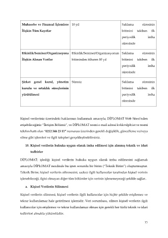 DİPLOMAT; işlediği kişisel verilerin hukuka uygun olarak imha edilmesini sağlamak